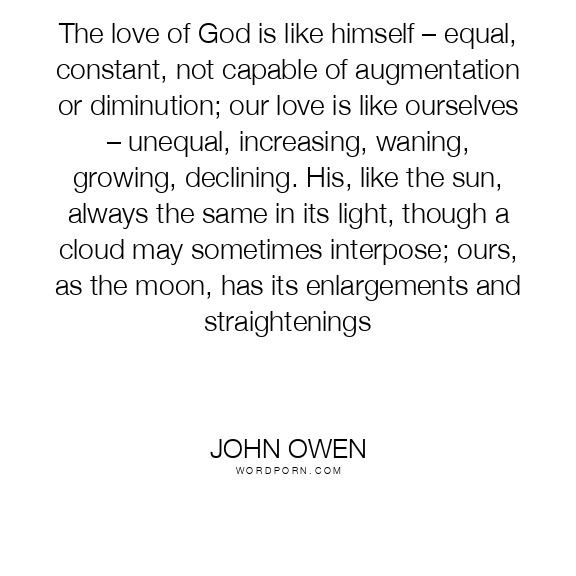 The love of God is like himself – equal, constant, not capable of augmentation or diminution; our love is like ourselves – unequal, increasing, waning, growing, declining. His, like the sun, always the same in its light, though a cloud may sometimes interpose; ours, as the moon, has its enlargements and straightenings