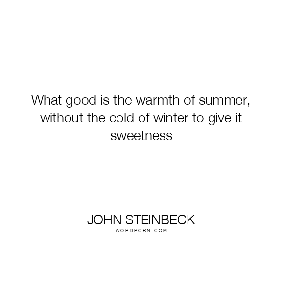 What good is the warmth of summer, without the cold of winter to give it sweetness