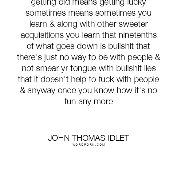 getting old means getting lucky sometimes means sometimes you learn & along with other sweeter acquisitions you learn that ninetenths of what goes down is bullshit that there's just no way to be with people & not smear yr tongue with bullshit lies that it doesn't help to fuck with people & anyway once you know how it's no fun any more