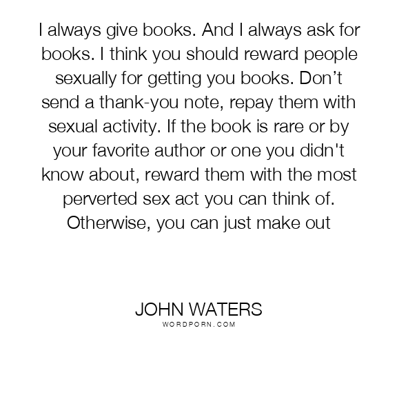 I always give books. And I always ask for books. I think you should reward people sexually for getting you books. Don’t send a thank-you note, repay them with sexual activity. If the book is rare or by your favorite author or one you didn't know about, reward them with the most perverted sex act you can think of. Otherwise, you can just make out