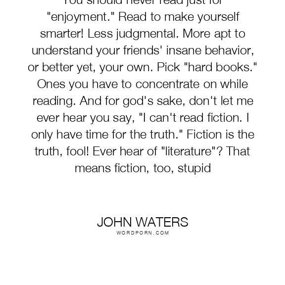 You should never read just for "enjoyment." Read to make yourself smarter! Less judgmental. More apt to understand your friends' insane behavior, or better yet, your own. Pick "hard books." Ones you have to concentrate on while reading. And for god's sake, don't let me ever hear you say, "I can't read fiction. I only have time for the truth." Fiction is the truth, fool! Ever hear of "literature"? That means fiction, too, stupid