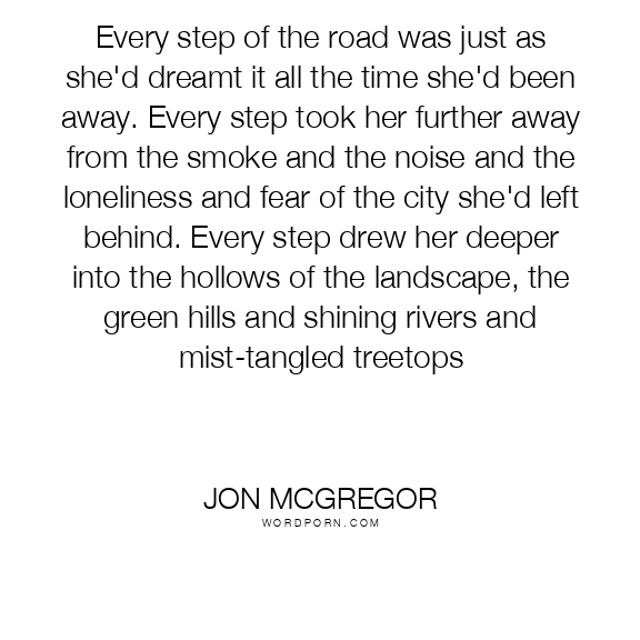 Every step of the road was just as she'd dreamt it all the time she'd been away. Every step took her further away from the smoke and the noise and the loneliness and fear of the city she'd left behind. Every step drew her deeper into the hollows of the landscape, the green hills and shining rivers and mist-tangled treetops
