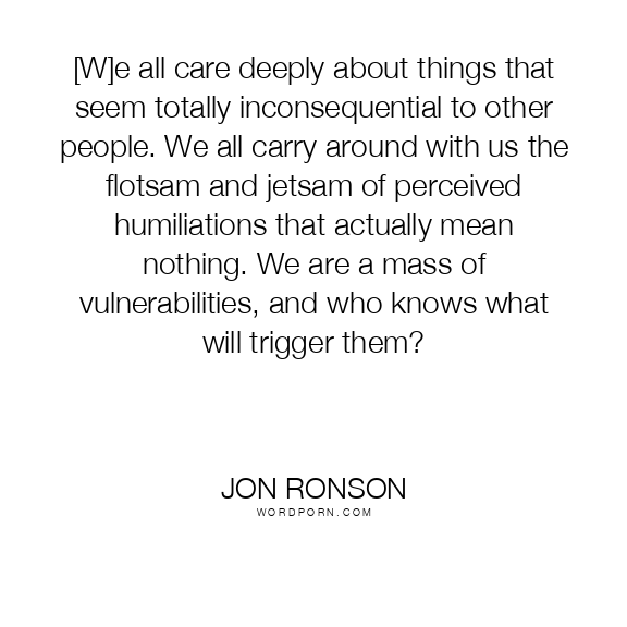 [W]e all care deeply about things that seem totally inconsequential to other people. We all carry around with us the flotsam and jetsam of perceived humiliations that actually mean nothing. We are a mass of vulnerabilities, and who knows what will trigger them?