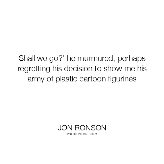 Shall we go?' he murmured, perhaps regretting his decision to show me his army of plastic cartoon figurines