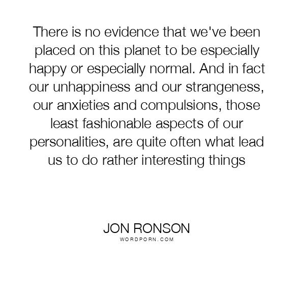 There is no evidence that we've been placed on this planet to be especially happy or especially normal. And in fact our unhappiness and our strangeness, our anxieties and compulsions, those least fashionable aspects of our personalities, are quite often what lead us to do rather interesting things