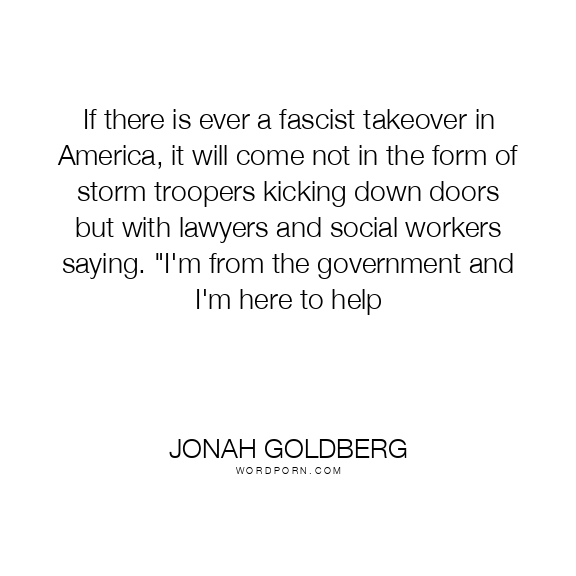 If there is ever a fascist takeover in America, it will come not in the form of storm troopers kicking down doors but with lawyers and social workers saying. "I'm from the government and I'm here to help