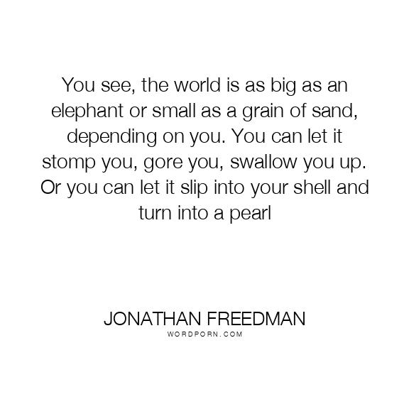 You see, the world is as big as an elephant or small as a grain of sand, depending on you. You can let it stomp you, gore you, swallow you up. Or you can let it slip into your shell and turn into a pearl