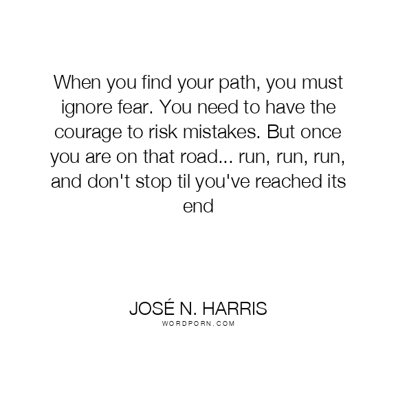 When you find your path, you must ignore fear. You need to have the courage to risk mistakes. But once you are on that road... run, run, run, and don't stop til you've reached its end