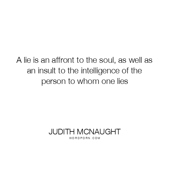 Judith McNaught quote. A lie is an affront to the soul, as well as an insult to the intelligence of the person to whom one lies