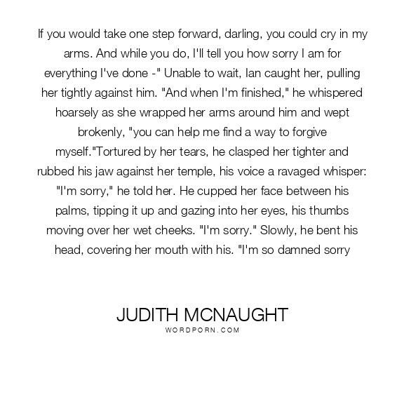 Judith McNaught quote. If you would take one step forward, darling, you could cry in my arms. And while you do, I'll tell you how sorry I am for everything I've done -