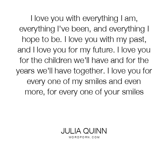I love you with everything I am, everything I've been, and everything I hope to be. I love you with my past, and I love you for my future. I love you for the children we'll have and for the years we'll have together. I love you for every one of my smiles and even more, for every one of your smiles
