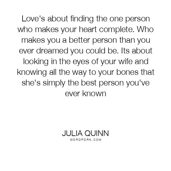 Love's about finding the one person who makes your heart complete. Who makes you a better person than you ever dreamed you could be. Its about looking in the eyes of your wife and knowing all the way to your bones that she's simply the best person you've ever known