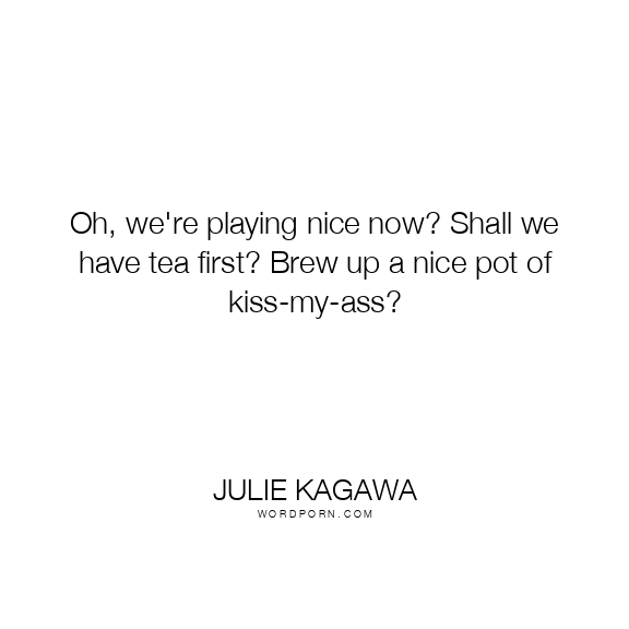 Oh, we're playing nice now? Shall we have tea first? Brew up a nice pot of kiss-my-ass?
