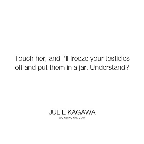 Touch her, and I'll freeze your testicles off and put them in a jar. Understand?