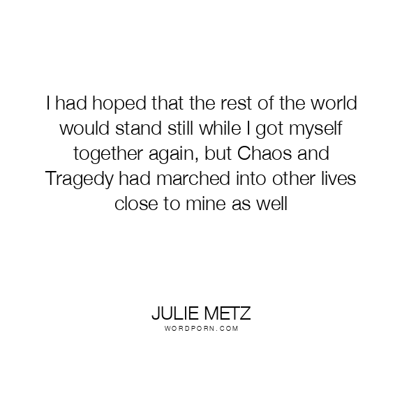 I had hoped that the rest of the world would stand still while I got myself together again, but Chaos and Tragedy had marched into other lives close to mine as well