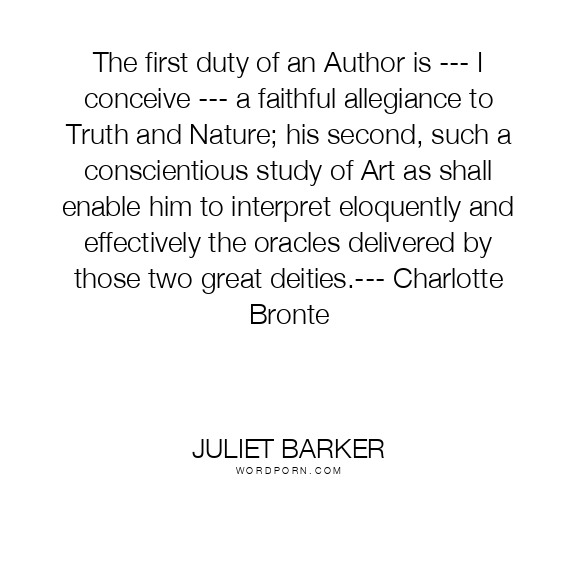 The first duty of an Author is --- I conceive --- a faithful allegiance to Truth and Nature; his second, such a conscientious study of Art as shall enable him to interpret eloquently and effectively the oracles delivered by those two great deities.--- Charlotte Bronte