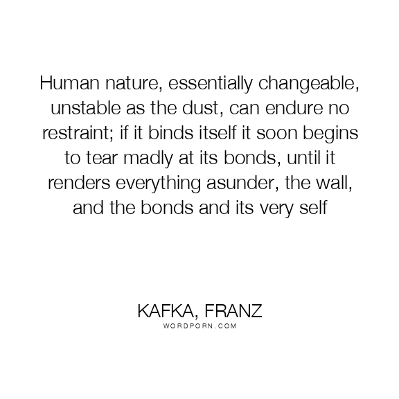 Human nature, essentially changeable, unstable as the dust, can endure no restraint; if it binds itself it soon begins to tear madly at its bonds, until it renders everything asunder, the wall, and the bonds and its very self
