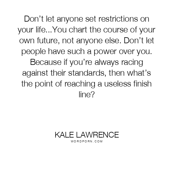 Don’t let anyone set restrictions on your life...You chart the course of your own future, not anyone else. Don’t let people have such a power over you. Because if you’re always racing against their standards, then what’s the point of reaching a useless finish line?