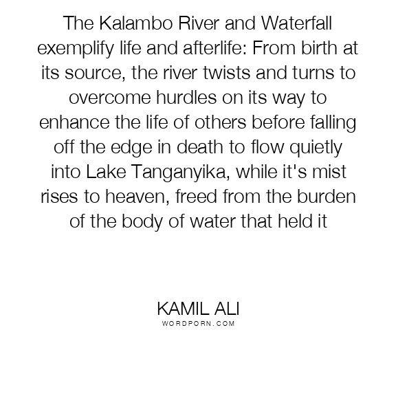 The Kalambo River and Waterfall exemplify life and afterlife: From birth at its source, the river twists and turns to overcome hurdles on its way to enhance the life of others before falling off the edge in death to flow quietly into Lake Tanganyika, while it's mist rises to heaven, freed from the burden of the body of water that held it