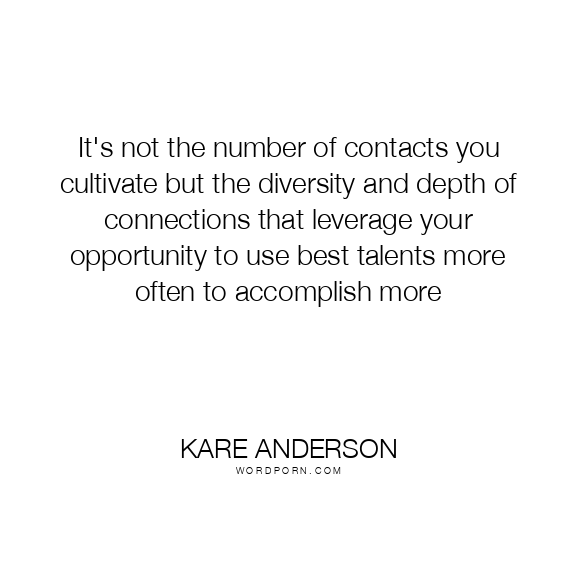 Kare Anderson quote. It's not the number of contacts you cultivate but the diversity and depth of connections that leverage your opportunity to use best talents more often to accomplish more