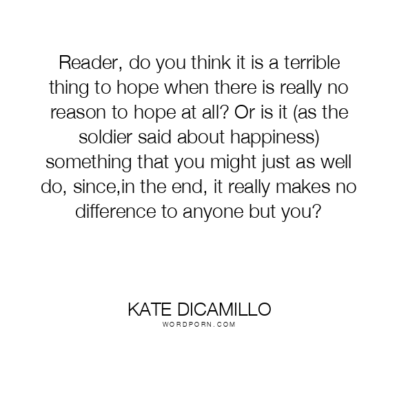Reader, do you think it is a terrible thing to hope when there is really no reason to hope at all? Or is it (as the soldier said about happiness) something that you might just as well do, since,in the end, it really makes no difference to anyone but you?