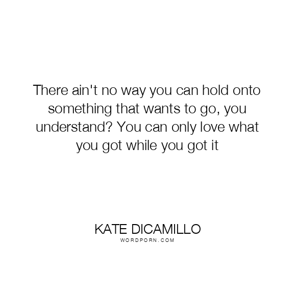 There ain't no way you can hold onto something that wants to go, you understand? You can only love what you got while you got it