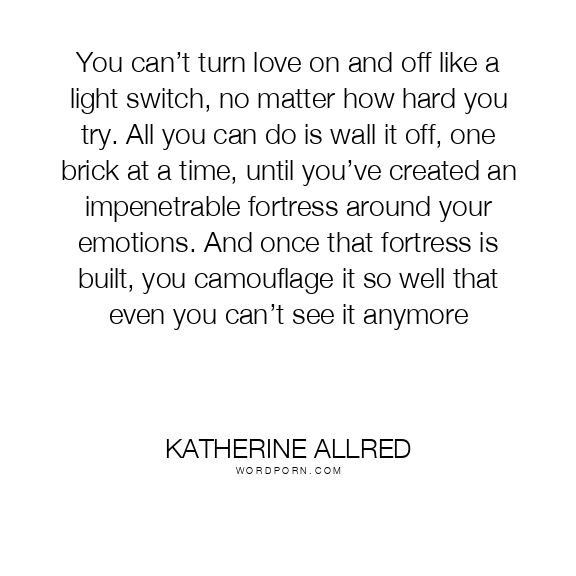 You can’t turn love on and off like a light switch, no matter how hard you try. All you can do is wall it off, one brick at a time, until you’ve created an impenetrable fortress around your emotions. And once that fortress is built, you camouflage it so well that even you can’t see it anymore