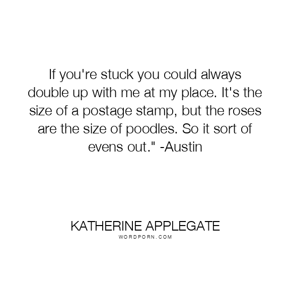 If you're stuck you could always double up with me at my place. It's the size of a postage stamp, but the roses are the size of poodles. So it sort of evens out." -Austin