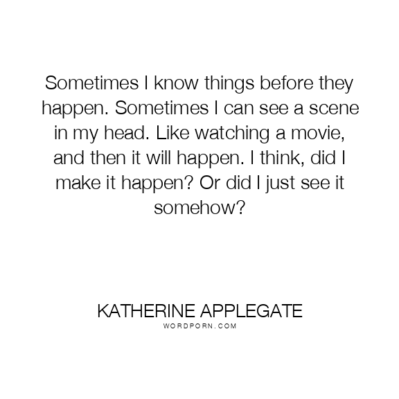 Sometimes I know things before they happen. Sometimes I can see a scene in my head. Like watching a movie, and then it will happen. I think, did I make it happen? Or did I just see it somehow?