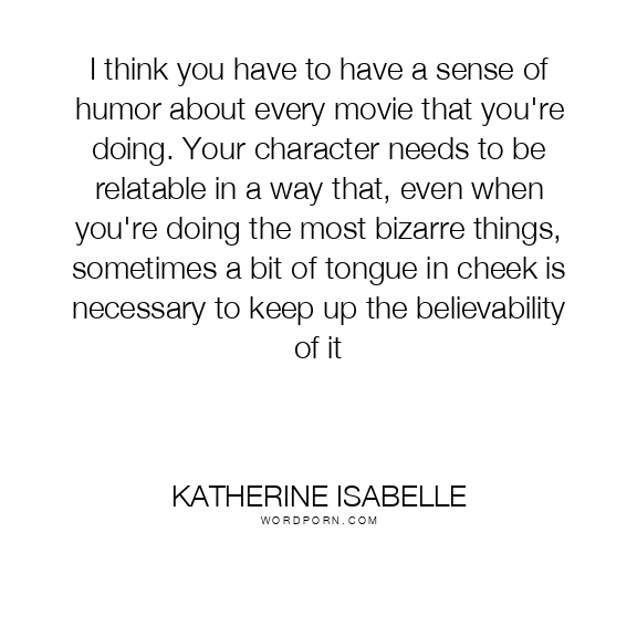 I think you have to have a sense of humor about every movie that you're doing. Your character needs to be relatable in a way that, even when you're doing the most bizarre things, sometimes a bit of tongue in cheek is necessary to keep up the believability of it
