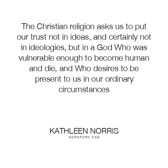 The Christian religion asks us to put our trust not in ideas, and certainly not in ideologies, but in a God Who was vulnerable enough to become human and die, and Who desires to be present to us in our ordinary circumstances