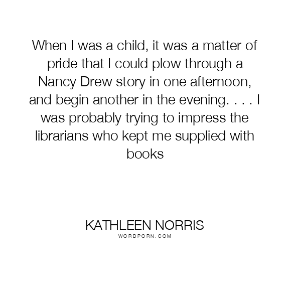 When I was a child, it was a matter of pride that I could plow through a Nancy Drew story in one afternoon, and begin another in the evening. . . . I was probably trying to impress the librarians who kept me supplied with books