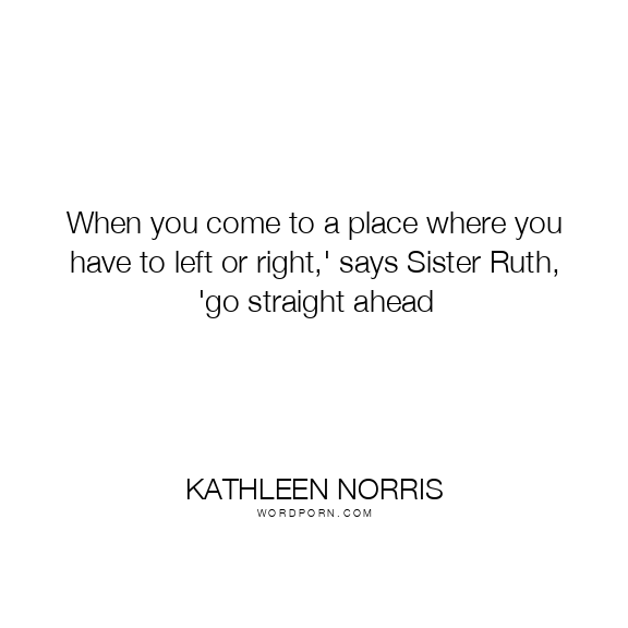 When you come to a place where you have to left or right,' says Sister Ruth, 'go straight ahead
