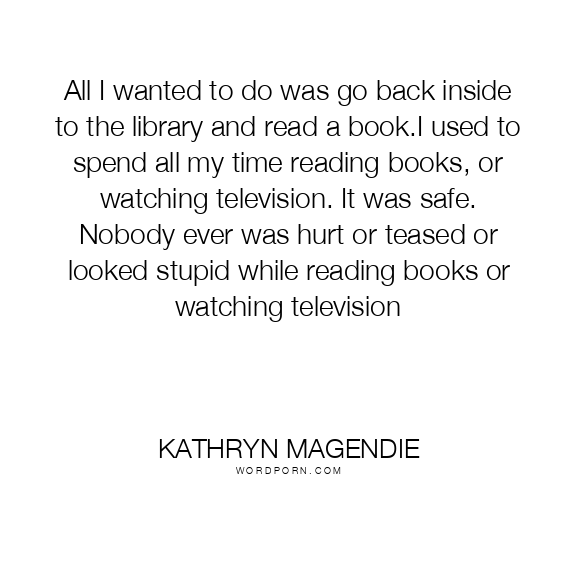 All I wanted to do was go back inside to the library and read a book.I used to spend all my time reading books, or watching television. It was safe. Nobody ever was hurt or teased or looked stupid while reading books or watching television
