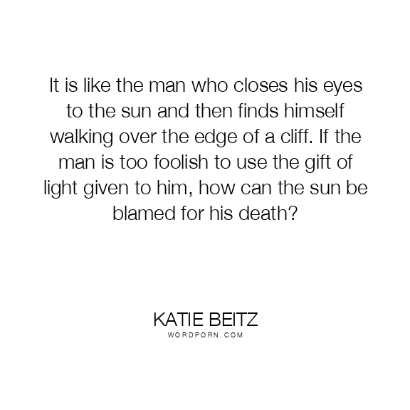 It is like the man who closes his eyes to the sun and then finds himself walking over the edge of a cliff. If the man is too foolish to use the gift of light given to him, how can the sun be blamed for his death?