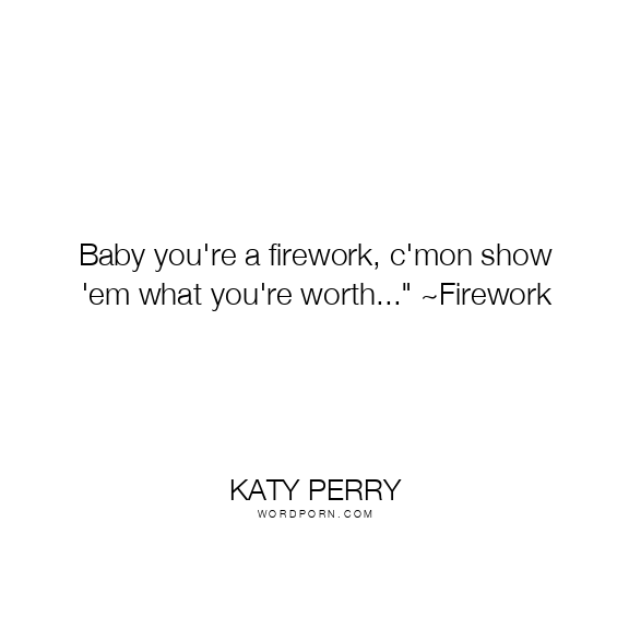 Baby you're a firework, c'mon show 'em what you're worth..." ~Firework