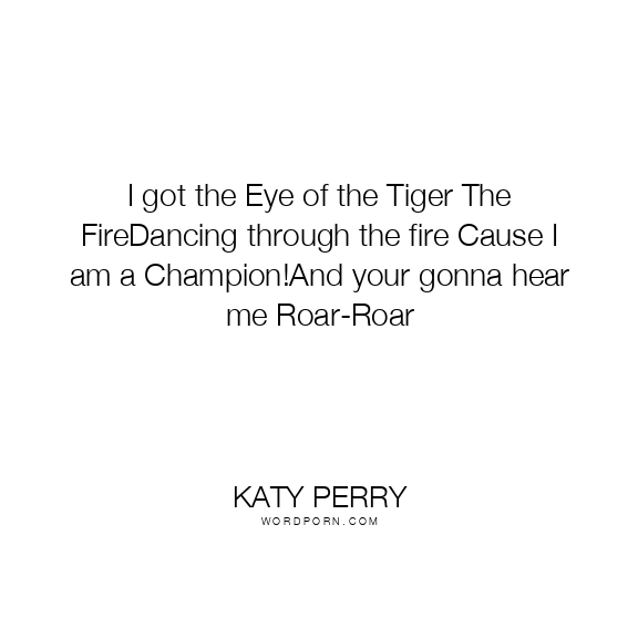 I got the Eye of the Tiger The FireDancing through the fire Cause I am a Champion!And your gonna hear me Roar-Roar
