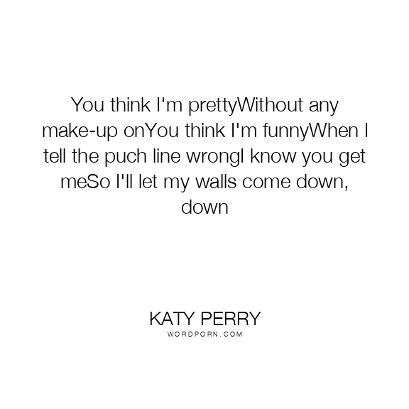 You think I'm prettyWithout any make-up onYou think I'm funnyWhen I tell the puch line wrongI know you get meSo I'll let my walls come down, down