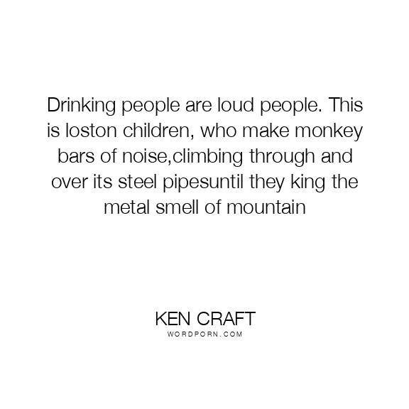 Drinking people are loud people. This is loston children, who make monkey bars of noise,climbing through and over its steel pipesuntil they king the metal smell of mountain