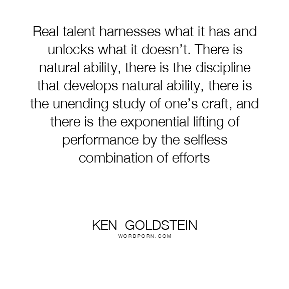 Real talent harnesses what it has and unlocks what it doesn’t. There is natural ability, there is the discipline that develops natural ability, there is the unending study of one’s craft, and there is the exponential lifting of performance by the selfless combination of efforts