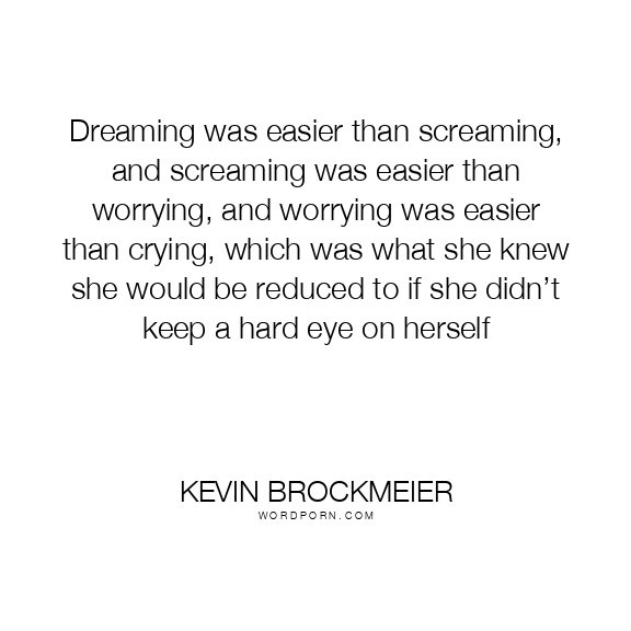 Dreaming was easier than screaming, and screaming was easier than worrying, and worrying was easier than crying, which was what she knew she would be reduced to if she didn’t keep a hard eye on herself