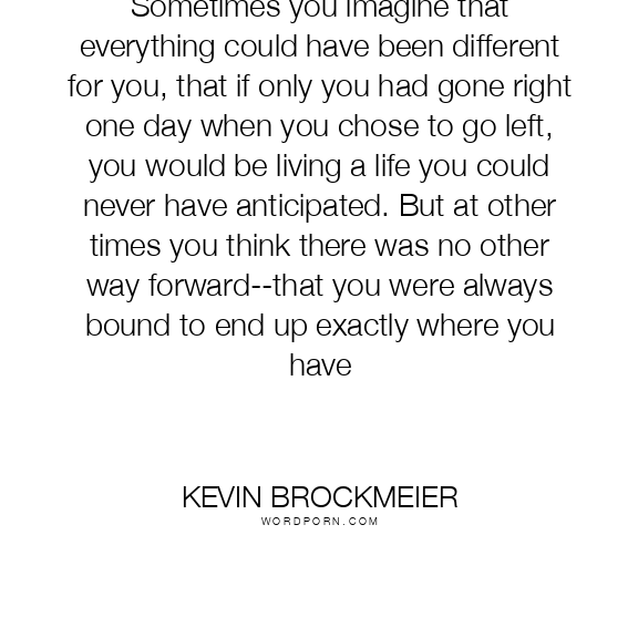 Sometimes you imagine that everything could have been different for you, that if only you had gone right one day when you chose to go left, you would be living a life you could never have anticipated. But at other times you think there was no other way forward--that you were always bound to end up exactly where you have