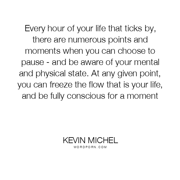 Every hour of your life that ticks by, there are numerous points and moments when you can choose to pause - and be aware of your mental and physical state. At any given point, you can freeze the flow that is your life, and be fully conscious for a moment