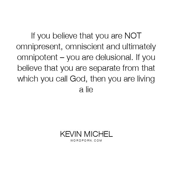 If you believe that you are NOT omnipresent, omniscient and ultimately omnipotent – you are delusional. If you believe that you are separate from that which you call God, then you are living a lie