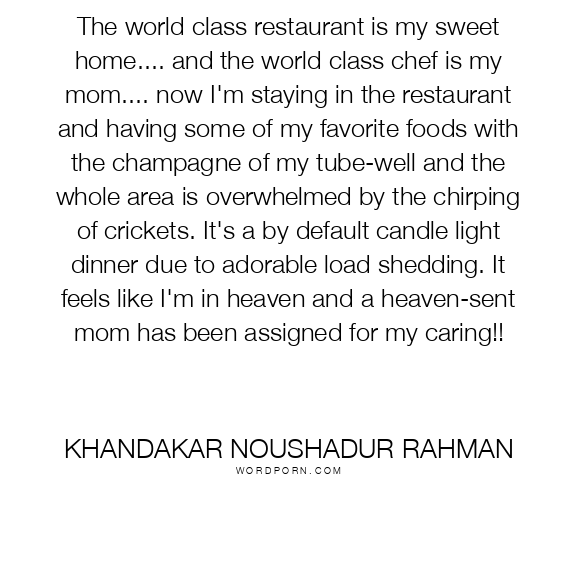 The world class restaurant is my sweet home.... and the world class chef is my mom.... now I'm staying in the restaurant and having some of my favorite foods with the champagne of my tube-well and the whole area is overwhelmed by the chirping of crickets. It's a by default candle light dinner due to adorable load shedding. It feels like I'm in heaven and a heaven-sent mom has been assigned for my caring!!