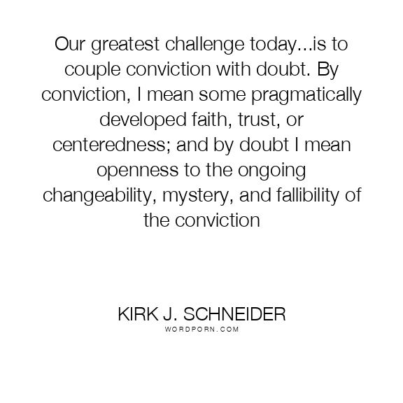 Our greatest challenge today...is to couple conviction with doubt. By conviction, I mean some pragmatically developed faith, trust, or centeredness; and by doubt I mean openness to the ongoing changeability, mystery, and fallibility of the conviction