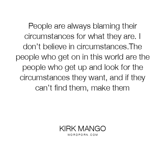 People are always blaming their circumstances for what they are. I don’t believe in circumstances.The people who get on in this world are the people who get up and look for the circumstances they want, and if they can’t find them, make them