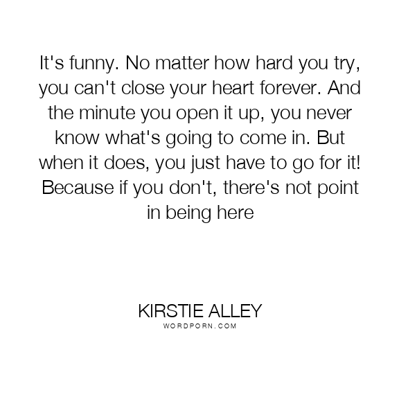 It's funny. No matter how hard you try, you can't close your heart forever. And the minute you open it up, you never know what's going to come in. But when it does, you just have to go for it! Because if you don't, there's not point in being here