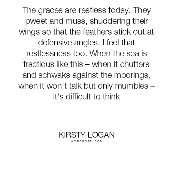 The graces are restless today. They pweet and muss, shuddering their wings so that the feathers stick out at defensive angles. I feel that restlessness too. When the sea is fractious like this – when it chutters and schwaks against the moorings, when it won't talk but only mumbles – it's difficult to think
