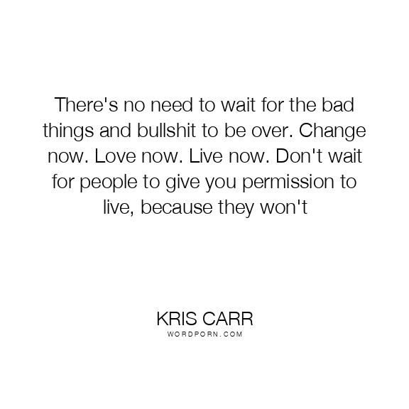 There's no need to wait for the bad things and bullshit to be over. Change now. Love now. Live now. Don't wait for people to give you permission to live, because they won't